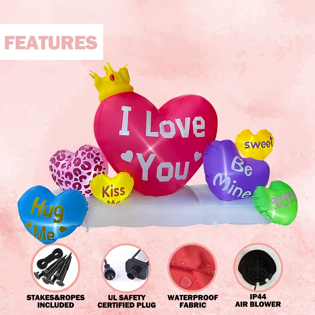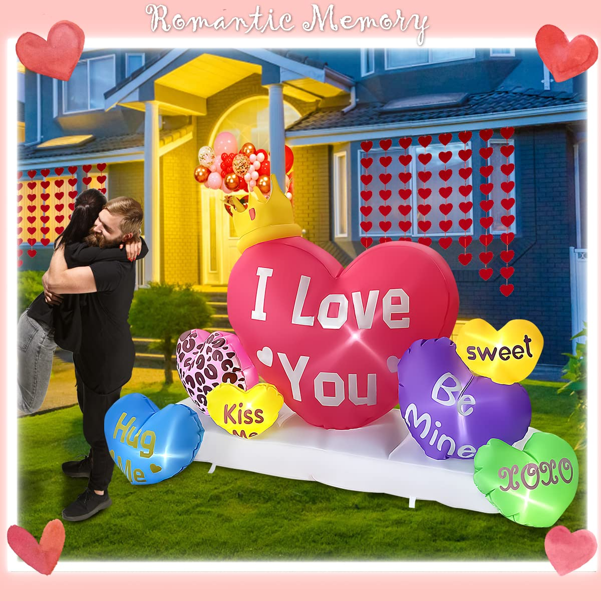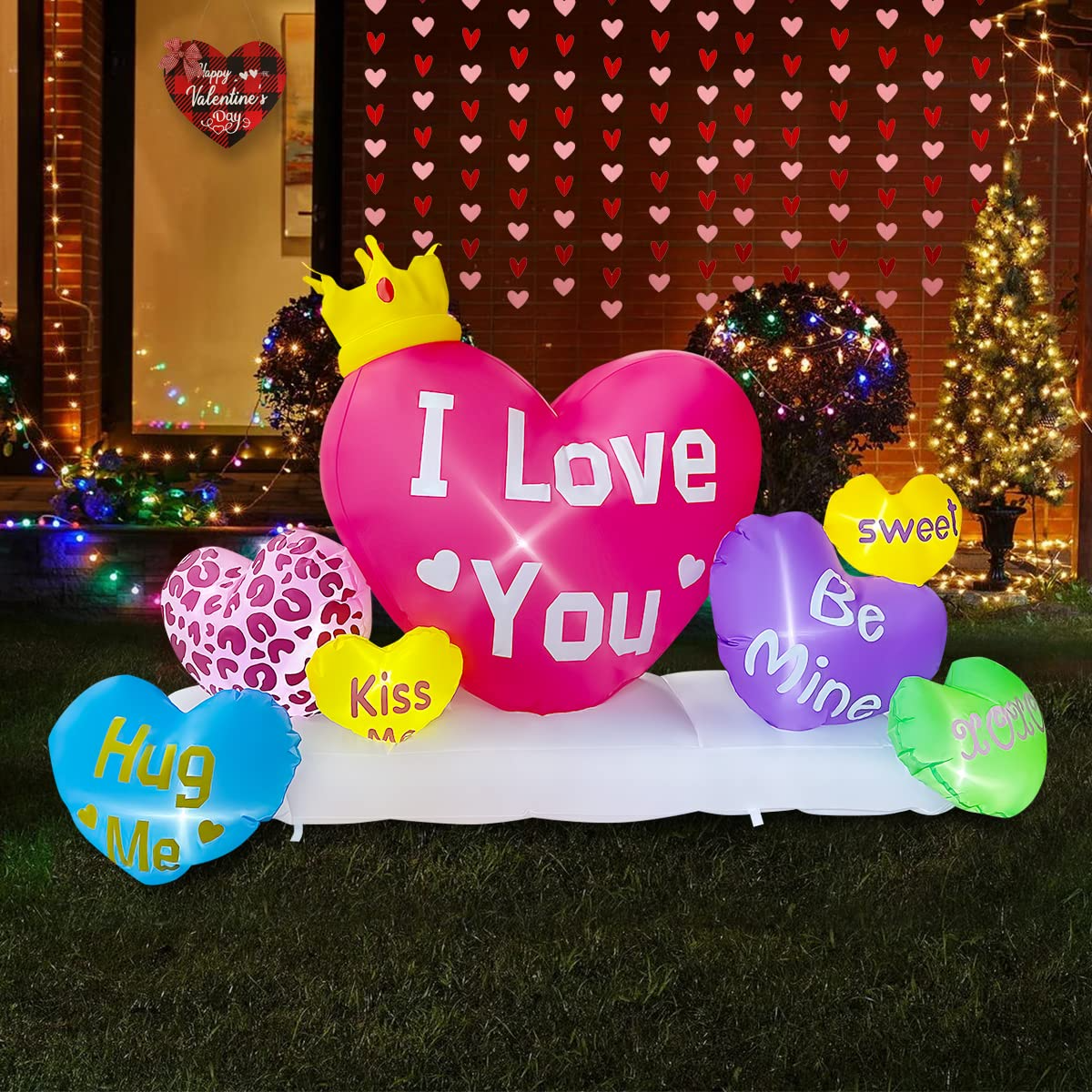 6 FT Valentine Inflatable Crown Hearts Funny Romantic LED Lighted Decoration for Birthday Wedding Yard Lawn Garden Home Party