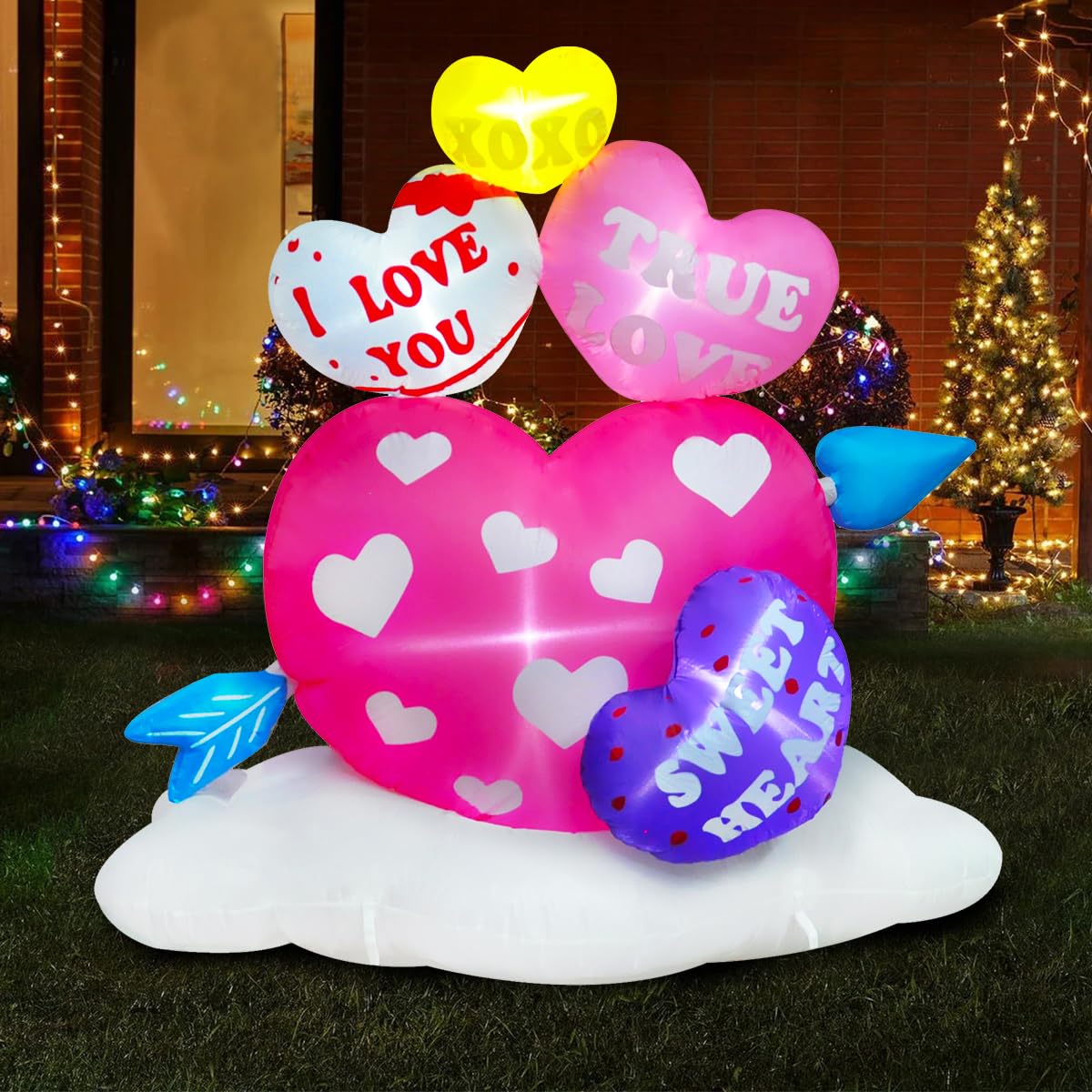6ft Inflatable Valentine Hearts with Arrow Decoration, LED Blow Up Lighted Decor Indoor Outdoor Holiday Art Decor Decorations Clearance