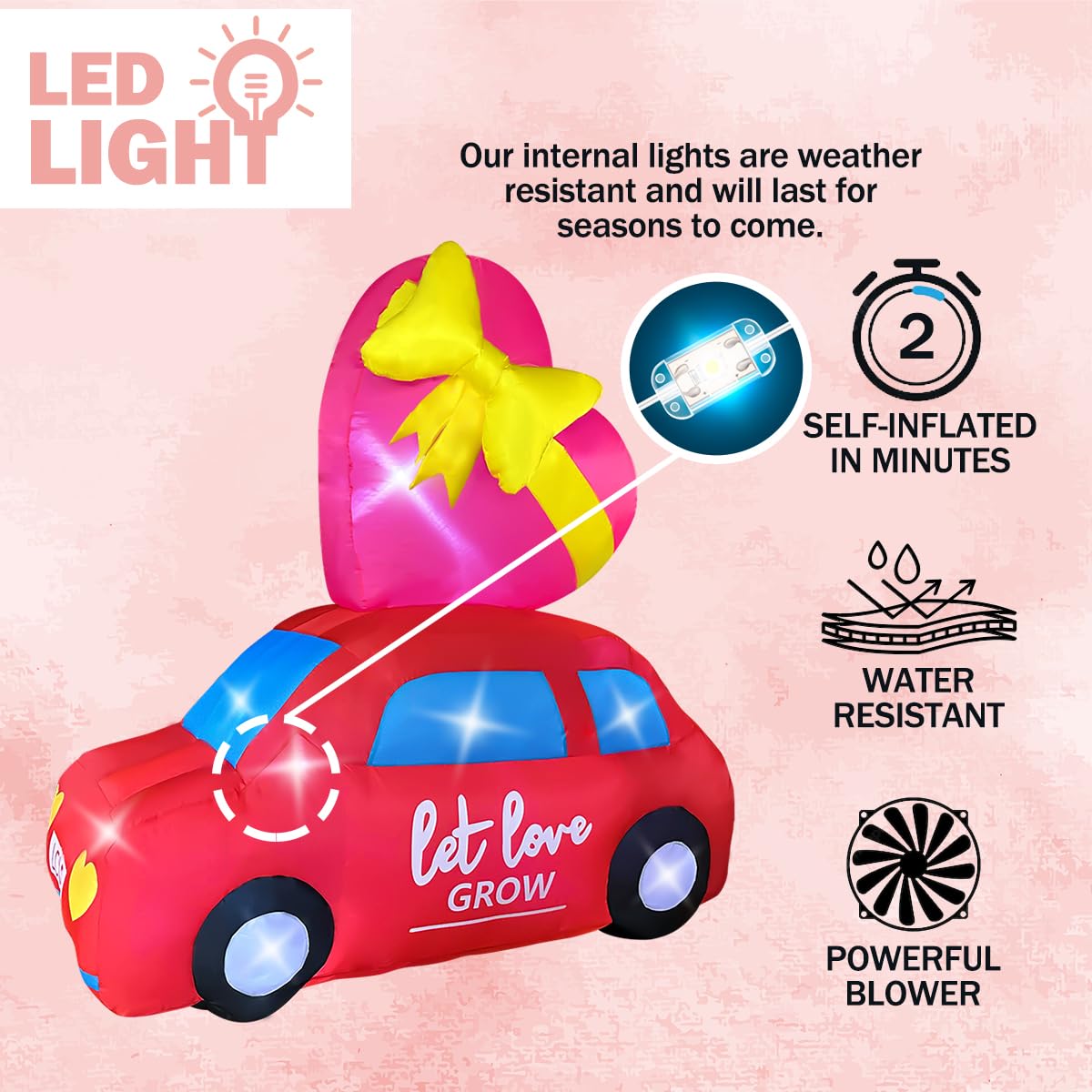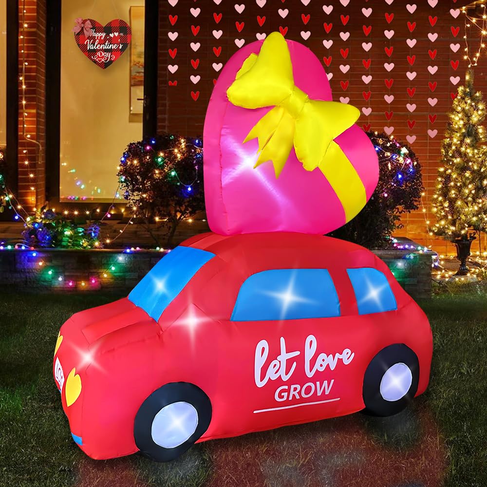 - GREAT FOR FESTIVAL: 6 Ft valentine's day Inflatable car with heart is ideal valentines day decor. this unique Valentine's day inflatable decoration will add fun and color to your Valentine's day