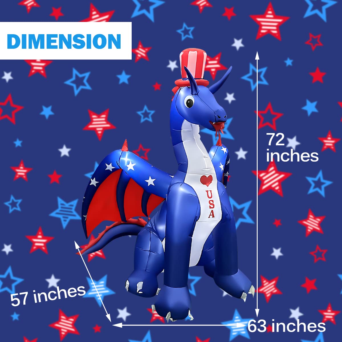 8 FT Independence Day Inflatable Dragon with America Style Decorations Patriotic 4th of July for Home Yard Lawn Garden Indoor Outdoor Decorat